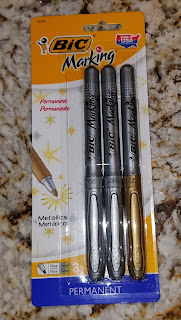 Bright silver and gold. I would think these will show up quite nicely and I am going to really make the lettering BIG and BOLD!
