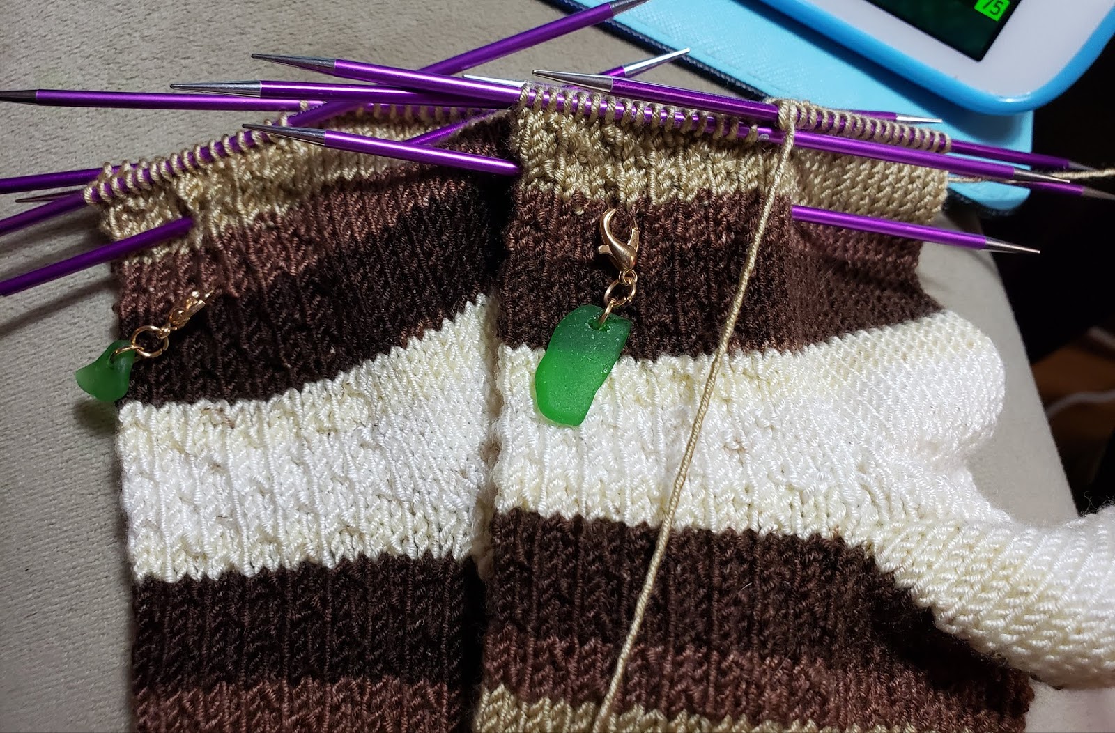 Since this is the last Sunday of the month it is time to show my dishcloths..............once again, there are nada, nil, zip, zero to show. This is bad. Those quick knit projects are what keep me from getting a bad case of startitis! I am getting antsy with only doing these two projects and dream of starting something else. Like a spring/summer sweater or a blanket or Christmas ornaments. I refuse to succumb to this whimsy. These two projects need to get done and ready to wear! I do want to thank all of you who gave me the Rose City Rollers idea for short socks. That is now in my library to do.